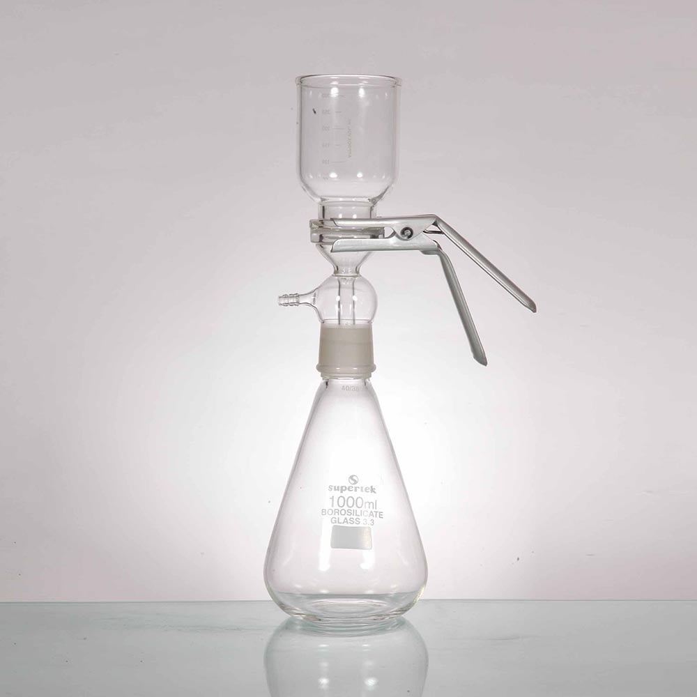 - Made of borosilicate 3.3 glass with fritted glass filter base