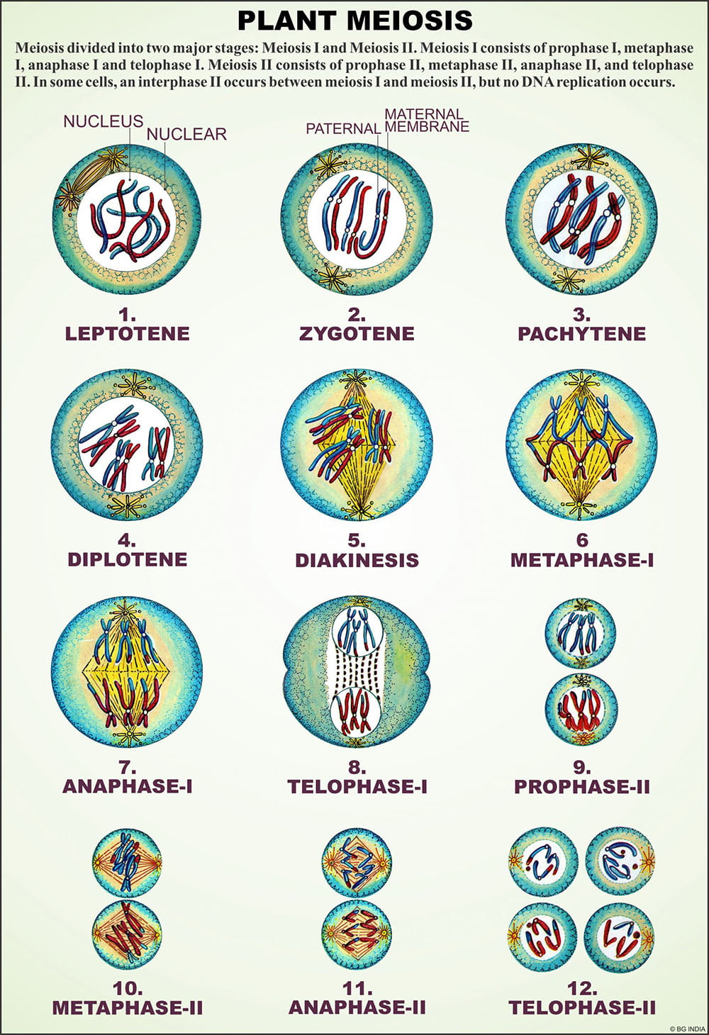 | Description | Plant cell ultra structure, Mitosis in plants, Meiosis in plants (1st & 2nd division shown in one chart), Structure of chromosome during mitosis, Structure of chromosome during meiosis, Typical plant, Plant kingdom showing flowering & non-flowering plants, Non-flowering plants (A classification), Xerophytic plants, Mesophytic plants, Epiphytic plants, Insectivorous plants, Fossil plants, Comparison of dicot & monocot plants, Flowering plants (A classification) |