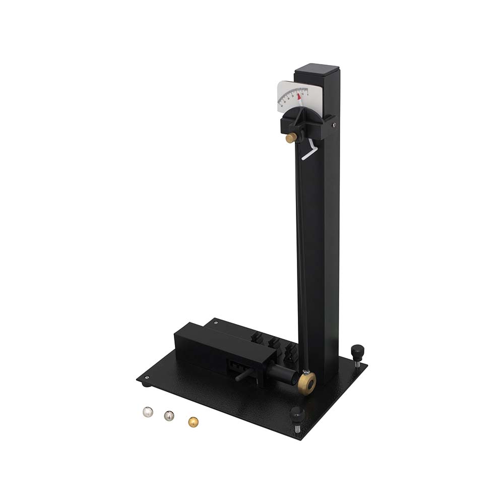 To demonstrate the laws of conservation of momentum and trajectory. Features a nylon block pendulum with tapered rubber insert, leveling and adjusting screws on both pendulum and base, and a rubber bumper to prevent damage on impact. Unit contains a scale marked in degrees for recording the height and is registered by a counter-weighted needle that remains in place at the height of the pendulum arc. With instructions.