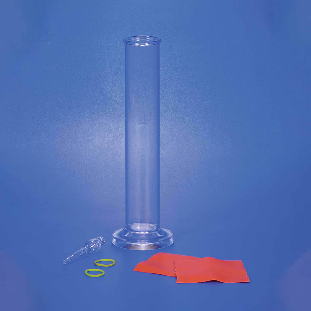 Demonstrates the transmission of pressure by a liquid, the compressibility of gases, and Archimedes’ principle. The set consists of a cartesian diver, glass cylinder, two rubber diaphragms, two elastic bands and instructions.