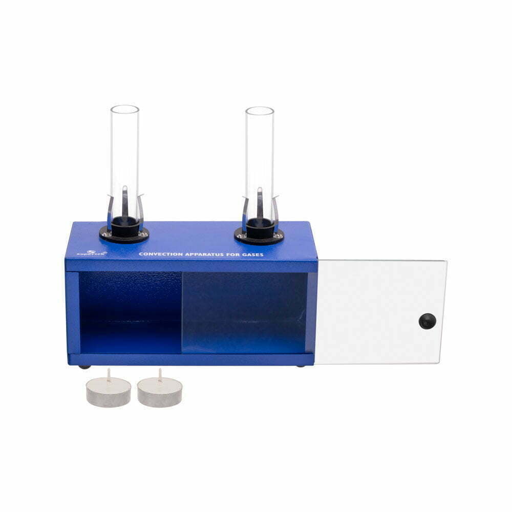 To show the convection of heat in air. Metal box, 225 x 105 x 105 mm, with sliding glass front and two detachable glass chimneys. Supplied with candles.