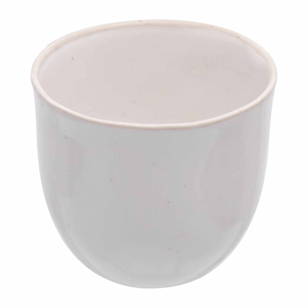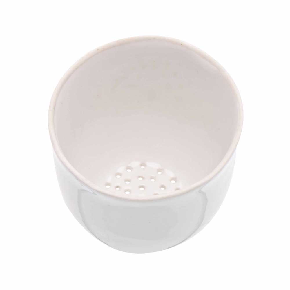 Porcelain, with fixed perforated bottom, glazed inside and outside, except for outside bottom surface and rim.