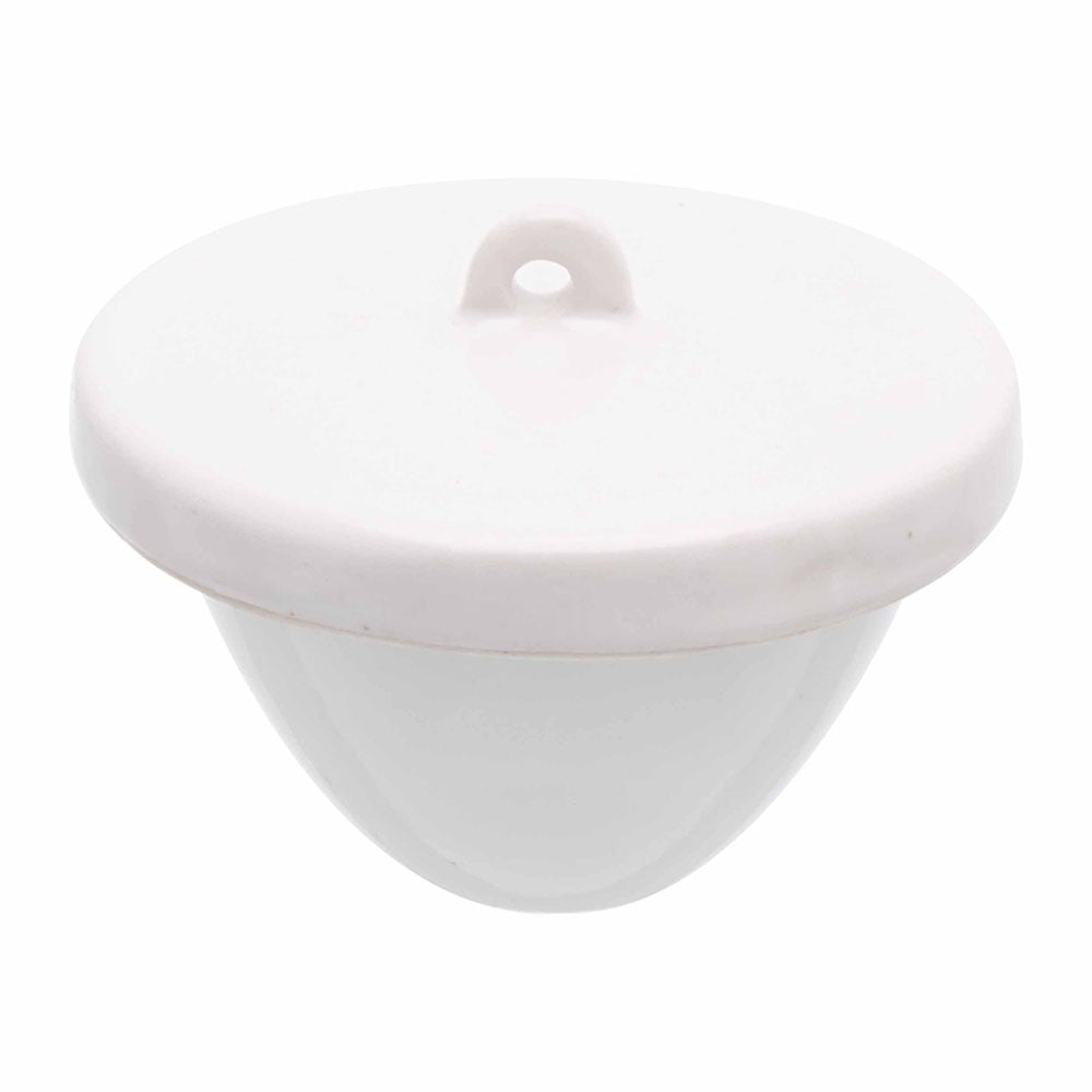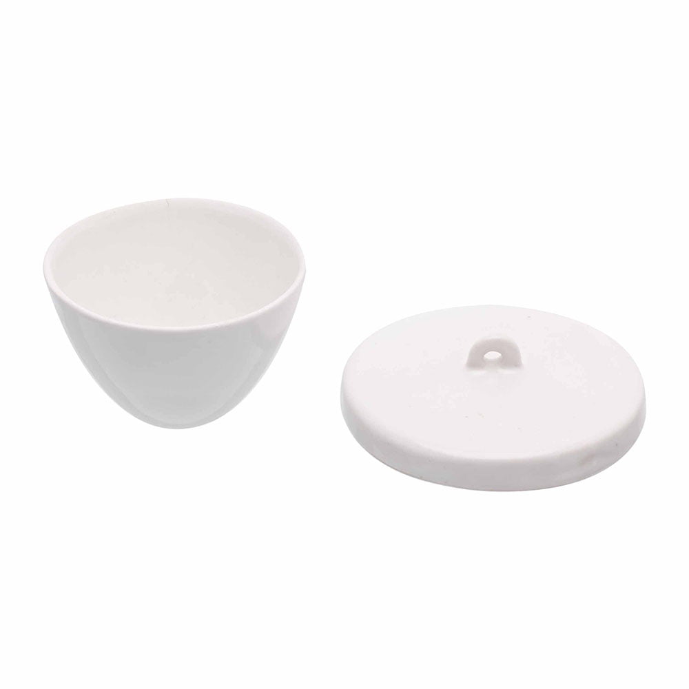 Porcelain, Squat form with lid, glazed inside and outside, except for outside bottom surface and rim.