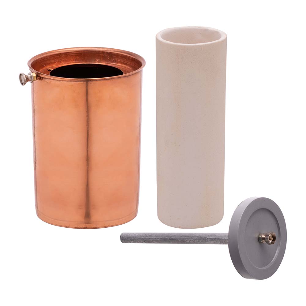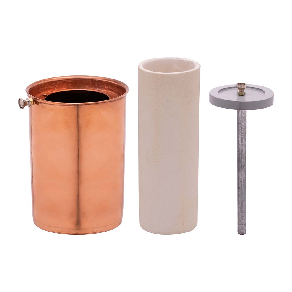 Outer copper vessel 125 x 75 mm with perforated shelf and terminal, a porous pot 150 x 50 mm and a zinc rod 125 x 12 mm, with support and terminal.