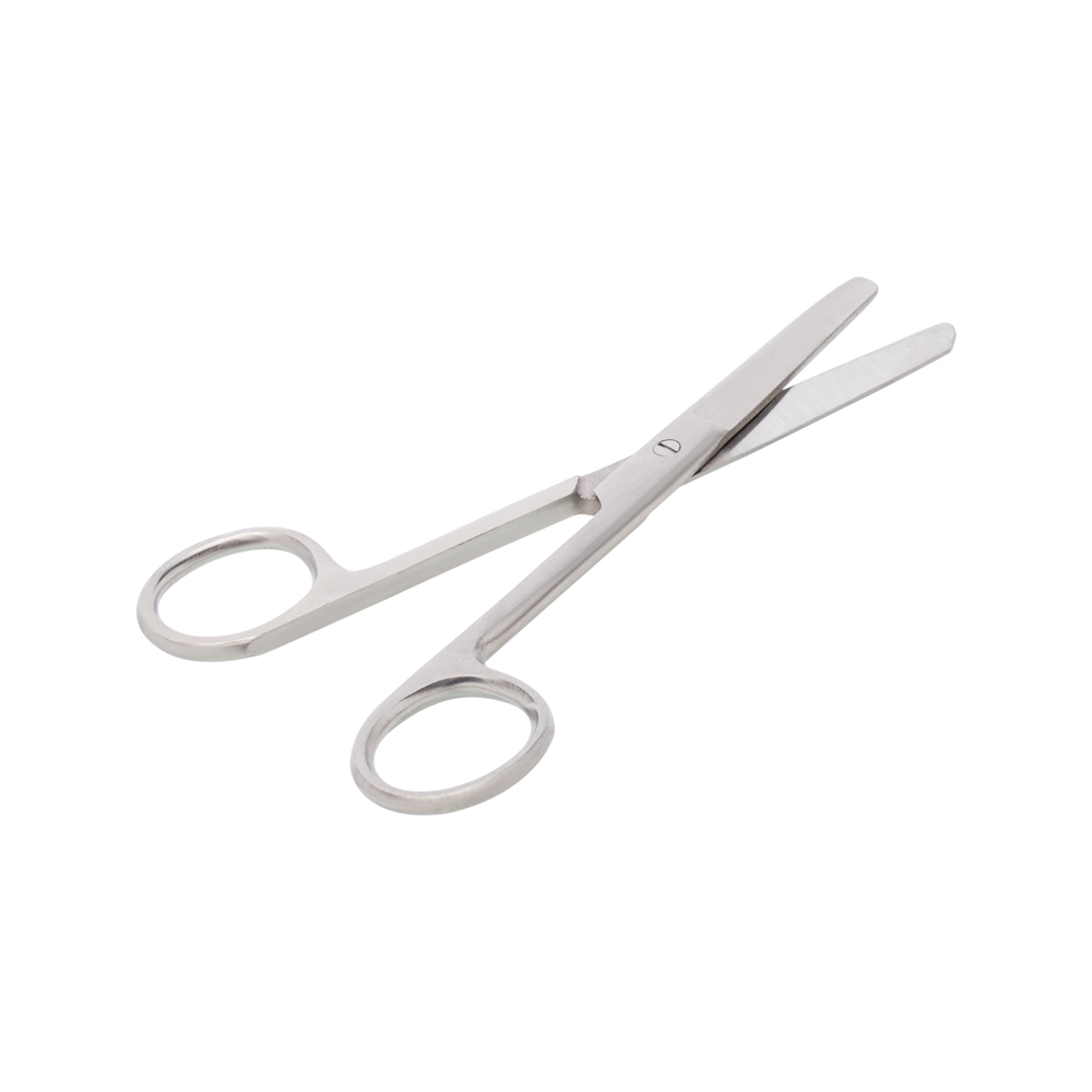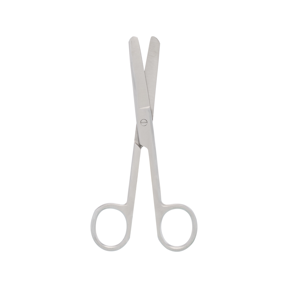 Stainless steel, straight, with one fine and one blunt end, making it easy to get into small spaces and cut tough tissue.