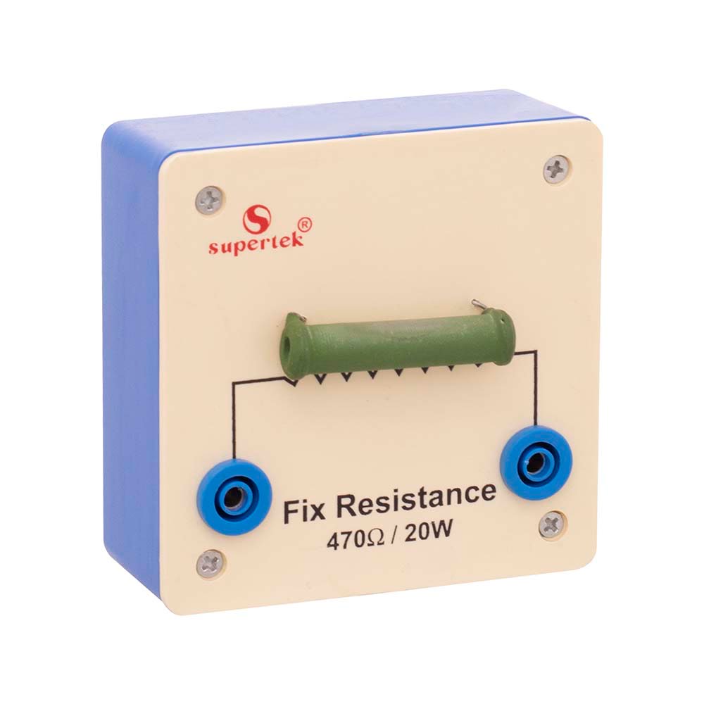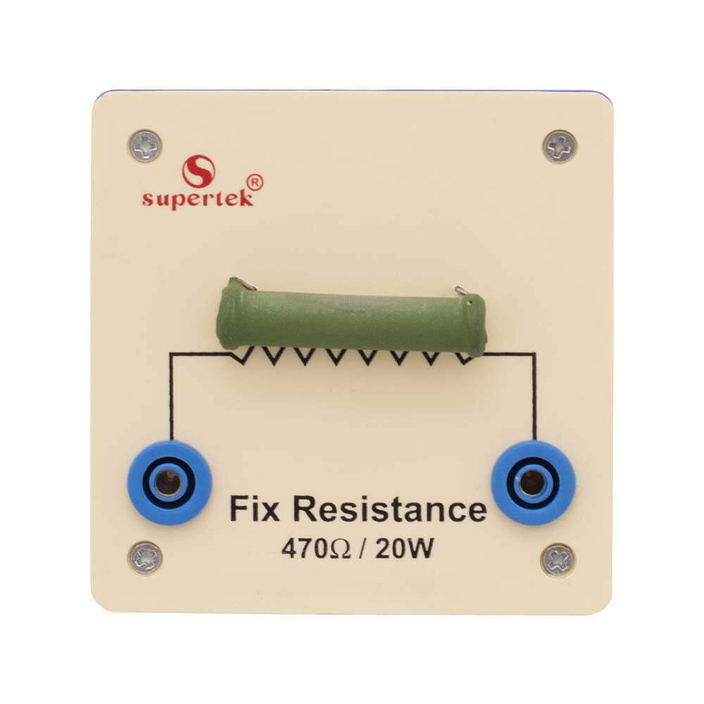A heavy duty resistor (50W) of fixed value is mounted on a plastic base. 4mm sockets are provided for connections.