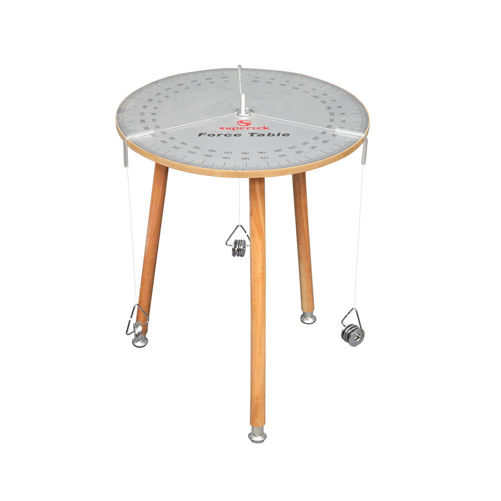 Wooden Table of 40 cm diameter having angular resolution to the nearest 0.5 Degree, supported on three adjustable legs. Each line is passed through a quarter bend of glass tubing, Equipped with four glass quarter bends, four weight hangers, 20 washers, one string set and instruction manual.