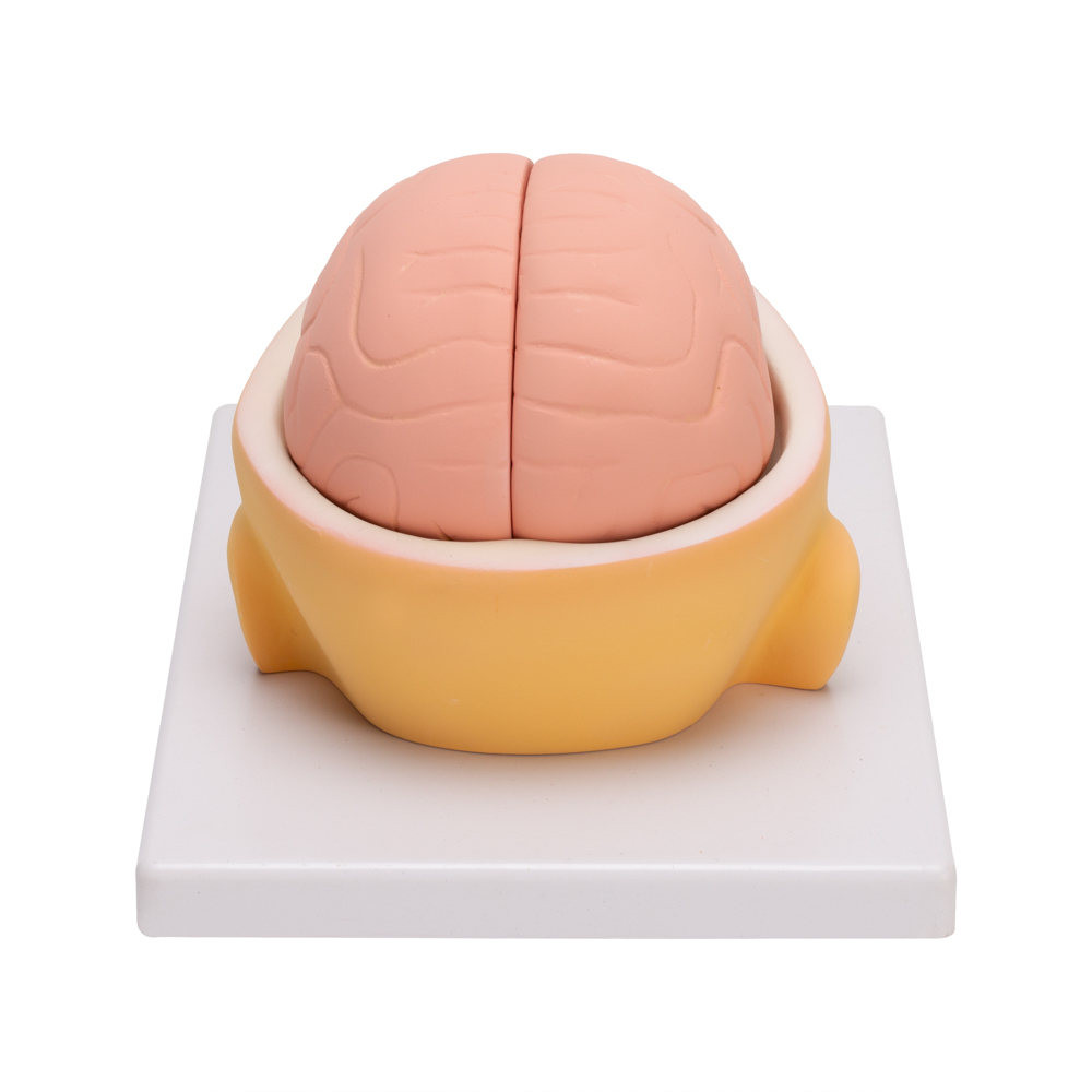 The presented human brain anatomy model is a two-part representation that can be conveniently divided into hemispheres along the midsagittal plane. This model effectively depict all the structures of the human cerebral cortex, cerebellum, and brain stem, including the origins of the twelve cranial nerves clearly showing all important parts, on removable base, with key card.