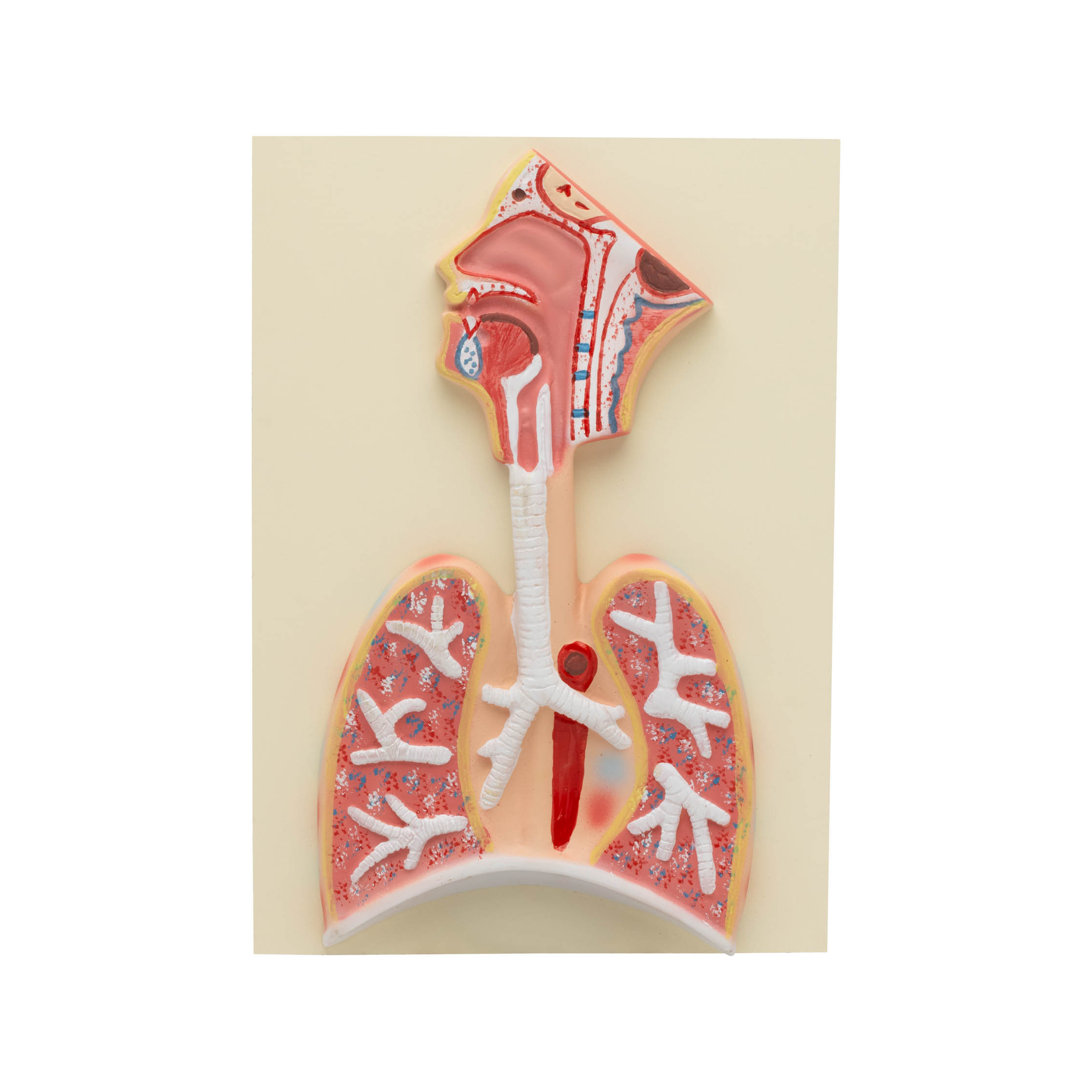This detailed anatomical model of the human respiratory system clearly displays all the essential components, providing a comprehensive understanding of respiratory anatomy. The model includes precise representations of the nasal cavity, pharynx, larynx, trachea, bronchi, lungs, and diaphragm. Each part is accurately detailed to highlight the structure and function of the respiratory system. Mounted on a sturdy board for stability and ease of display, the model comes complete with a key card that labels and explains each part, making it an excellent educational tool for students, educators, and medical professionals.