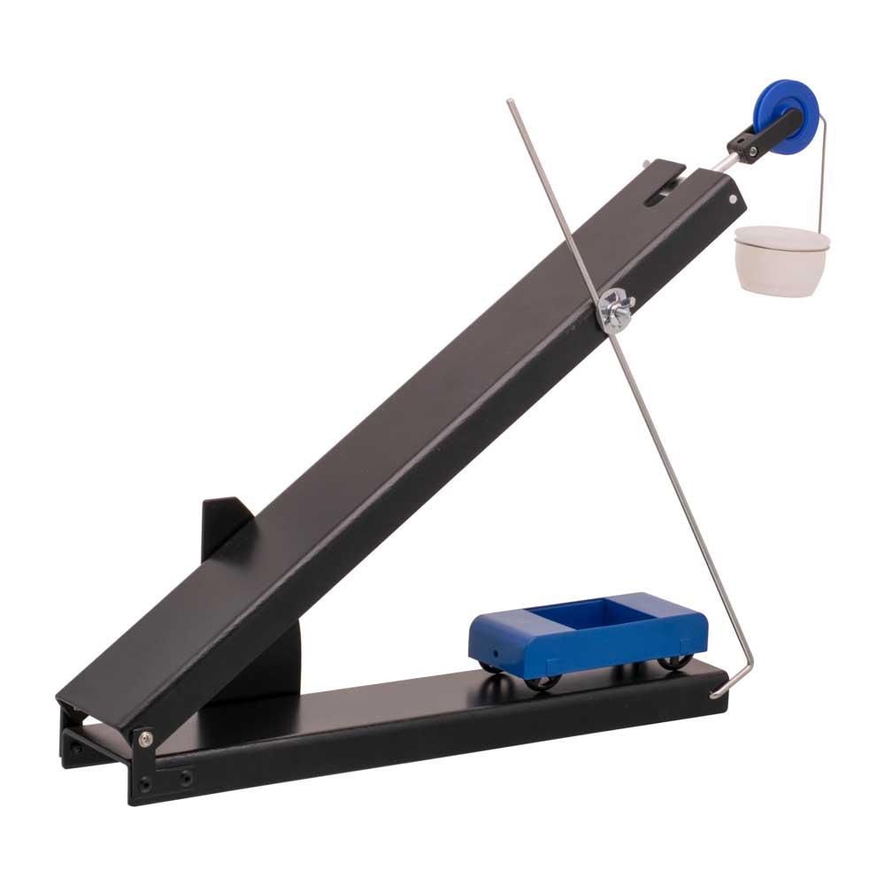 To investigate acceleration, friction, gravity and free-fall experiments. The inclined plane folds easily for storage with a special hinge. Clamps to 45° and includes a protractor and pulley. All-aluminum construction supplied with Hall’s carriage, pulley, weight pan, solid aluminum plane and accessories, with detail & illustrated instructions.