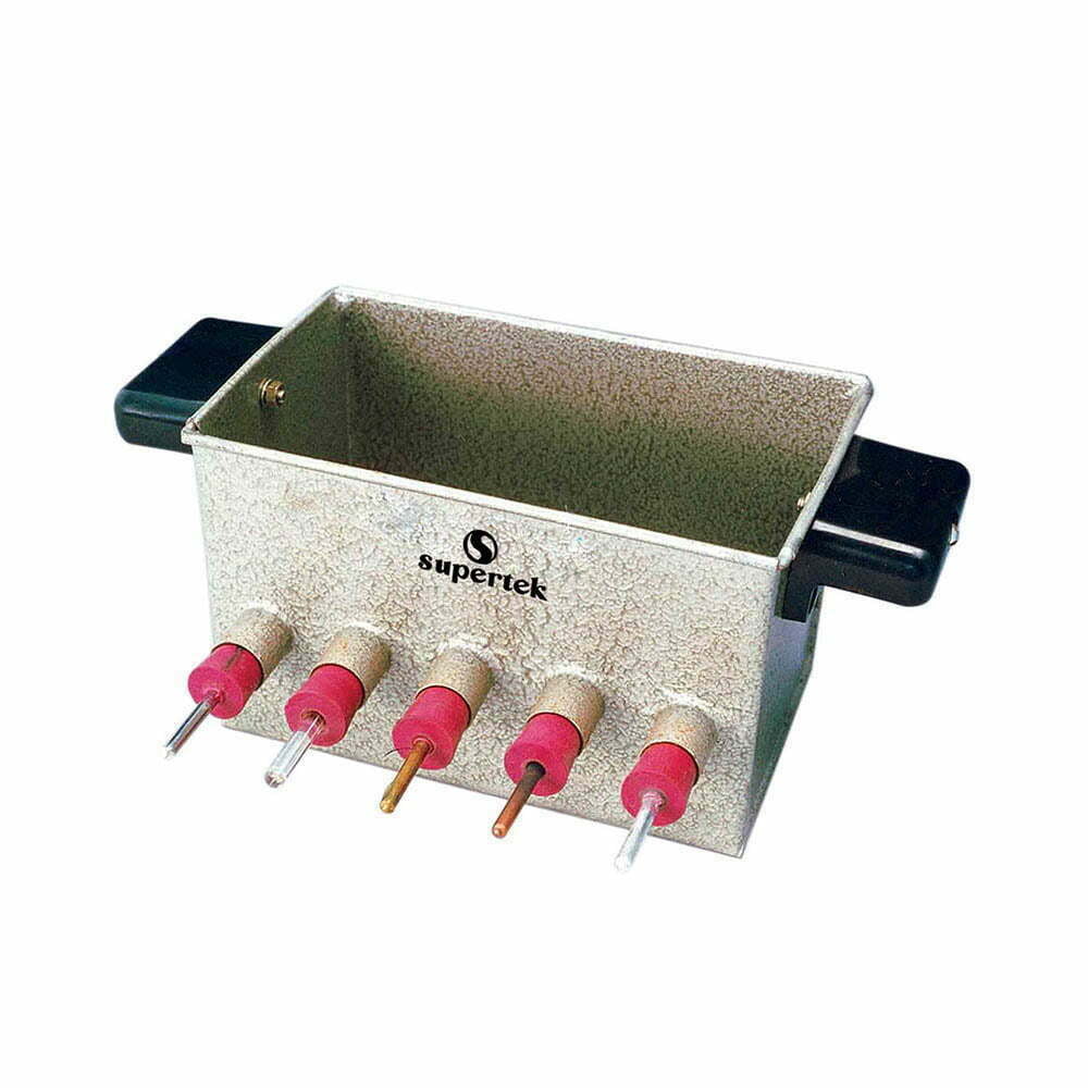 To demonstrate different conductivities of different metals. Rods of 5 different metals and wood, fitted along one side of a metal tank.