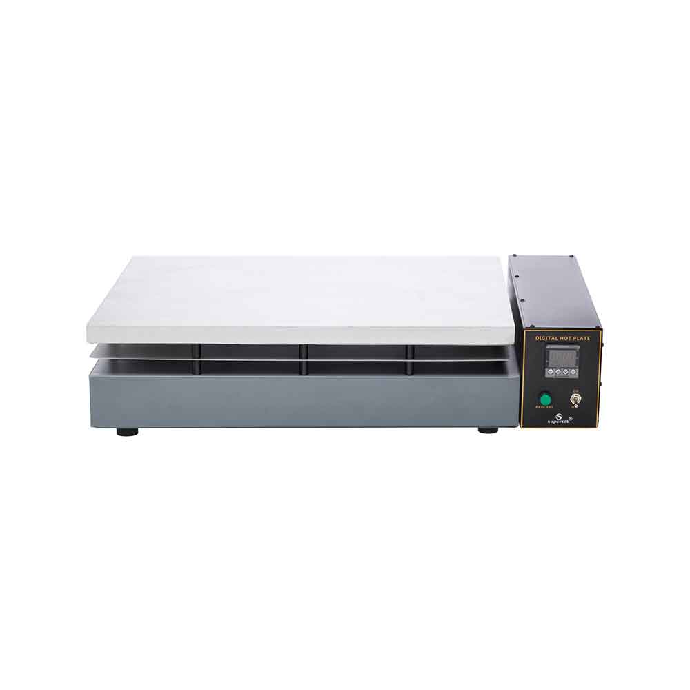 These rectangular hot plates, with large surface area can be used for heating multiple solutions simultaneously. Insert the external probe in the liquid solution and measure/control the temperature of liquid directly.
