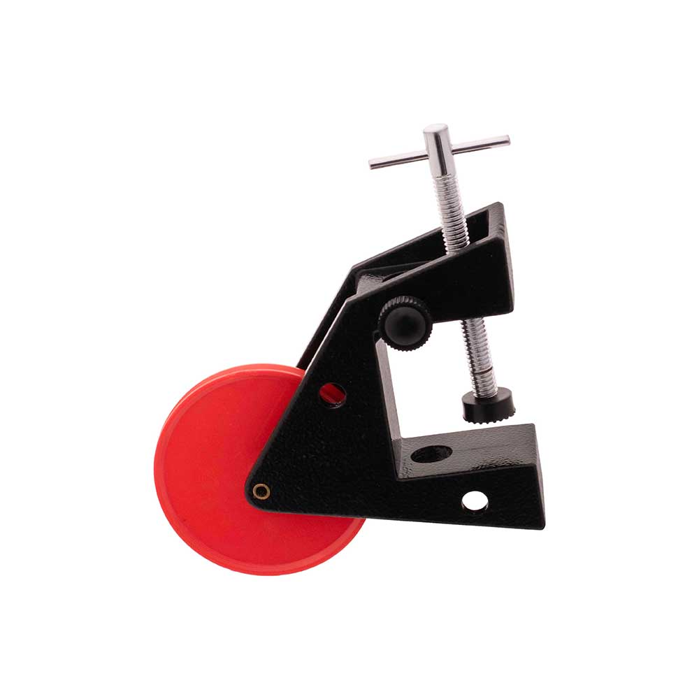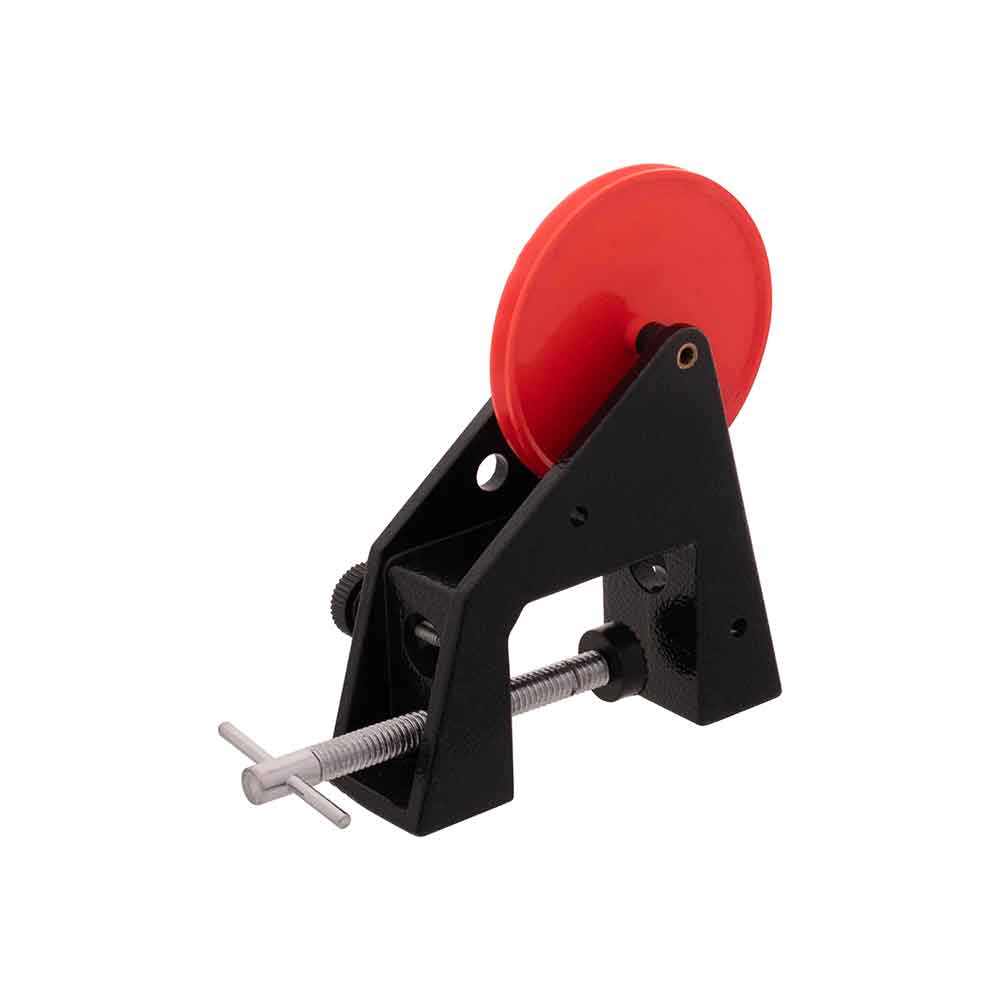 70 mm plastic pulley mounted on metal clamp. It can be clamped upto 38 mm thick bench or upto 13 mm support rod.