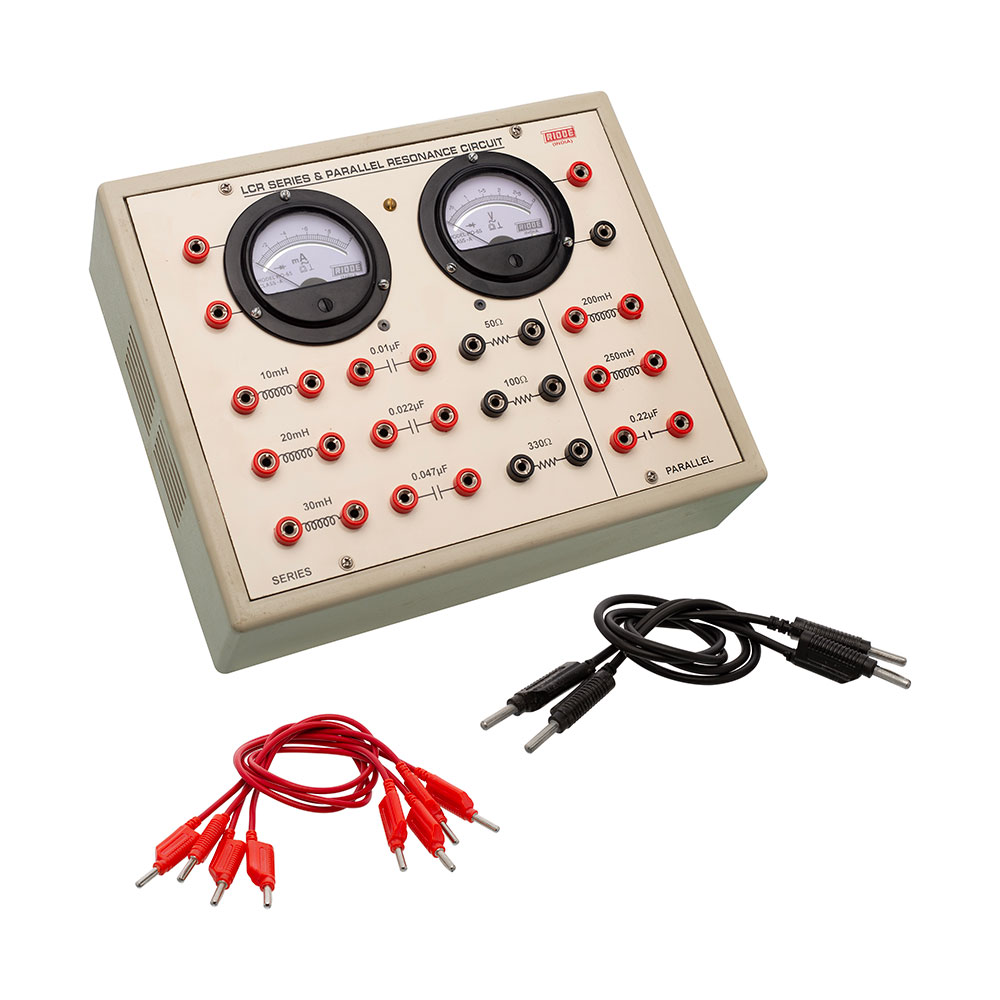 Features: The instrument comprises of 3 Resistances, 3 Capacitors, and 1 Inductance connected inside and connections brought out at Sockets. 2 AC moving coil meters to measure voltage and current.