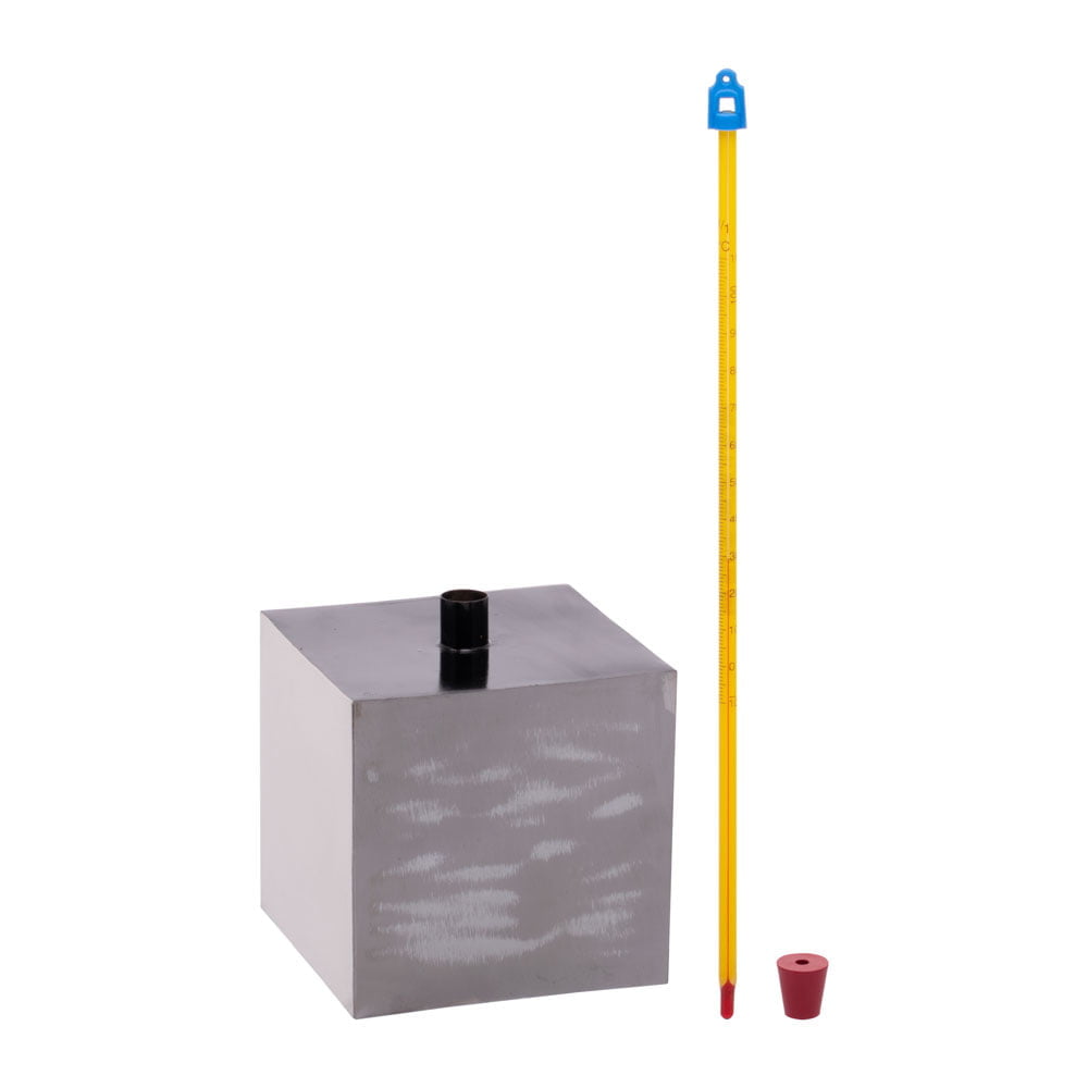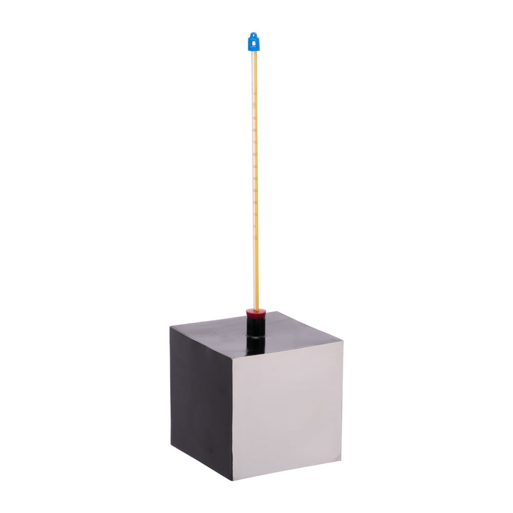 Consisting of a galvanized iron box with 130 mm sides. The vertical faces are blackened dull, blackened bright, white, and polished respectively, with a tubule at the top for the thermometer. Supplied with the thermometer.