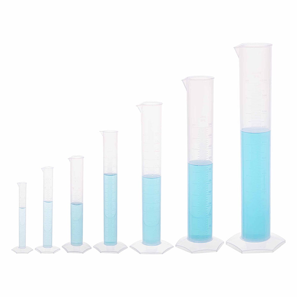 The hexagonal base provides excellent stability to the cylinder where as the tapered spout works well while pouring any reagent. Polypropylene.