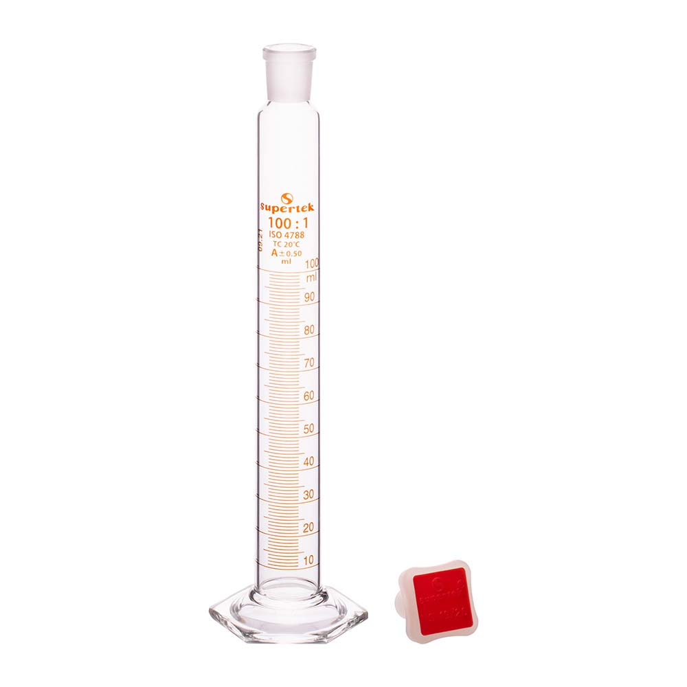 Measuring Cylinder with Hexagonal Base and Interchangeable Polypropylene Stopper, Class A
