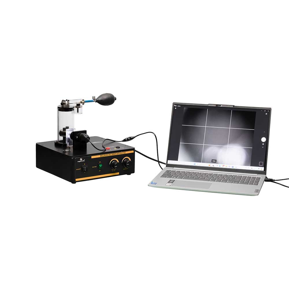Supertek’s Millikan Oil Drop Apparatus is a contemporary version of the classic design which allows the students to observe the velocity of an oil drop rising and falling in an electric filed. The apparatus is equipped with camera which allows the user to connect it with the computer screen for an easy viewing of the droplets. It permits the calculation of the force acting on the charge carried by the oil drop.