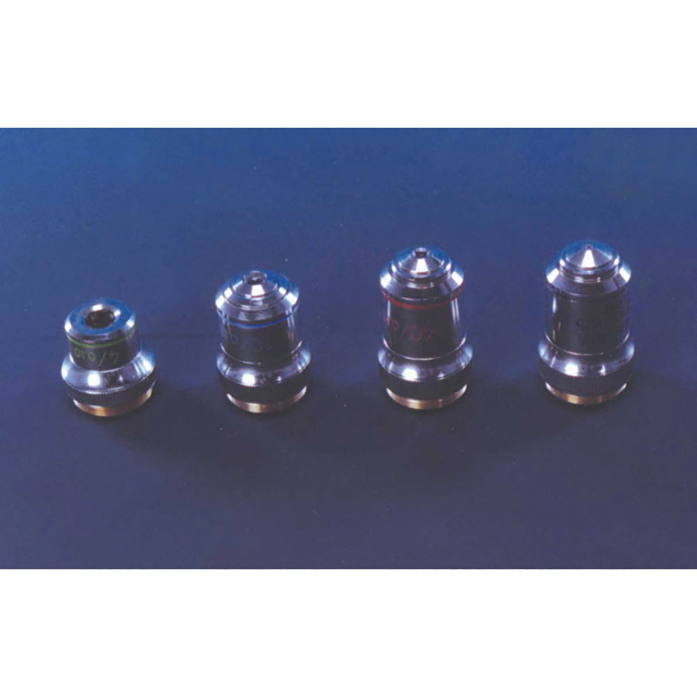 Achromatic, standard international threads, interchangeable. x40, x 60 and x100 objectives are spring-loaded and are retraceable for safety of slides and to avoid damage to objective lens.