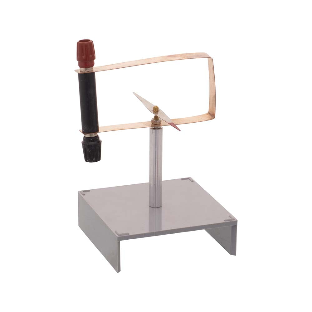 To show action of electric current on a magnet. A 75 mm cobalt steel needle supported on a pivot is mounted on base and is surrounded by a copper strip rectangle with two terminals.