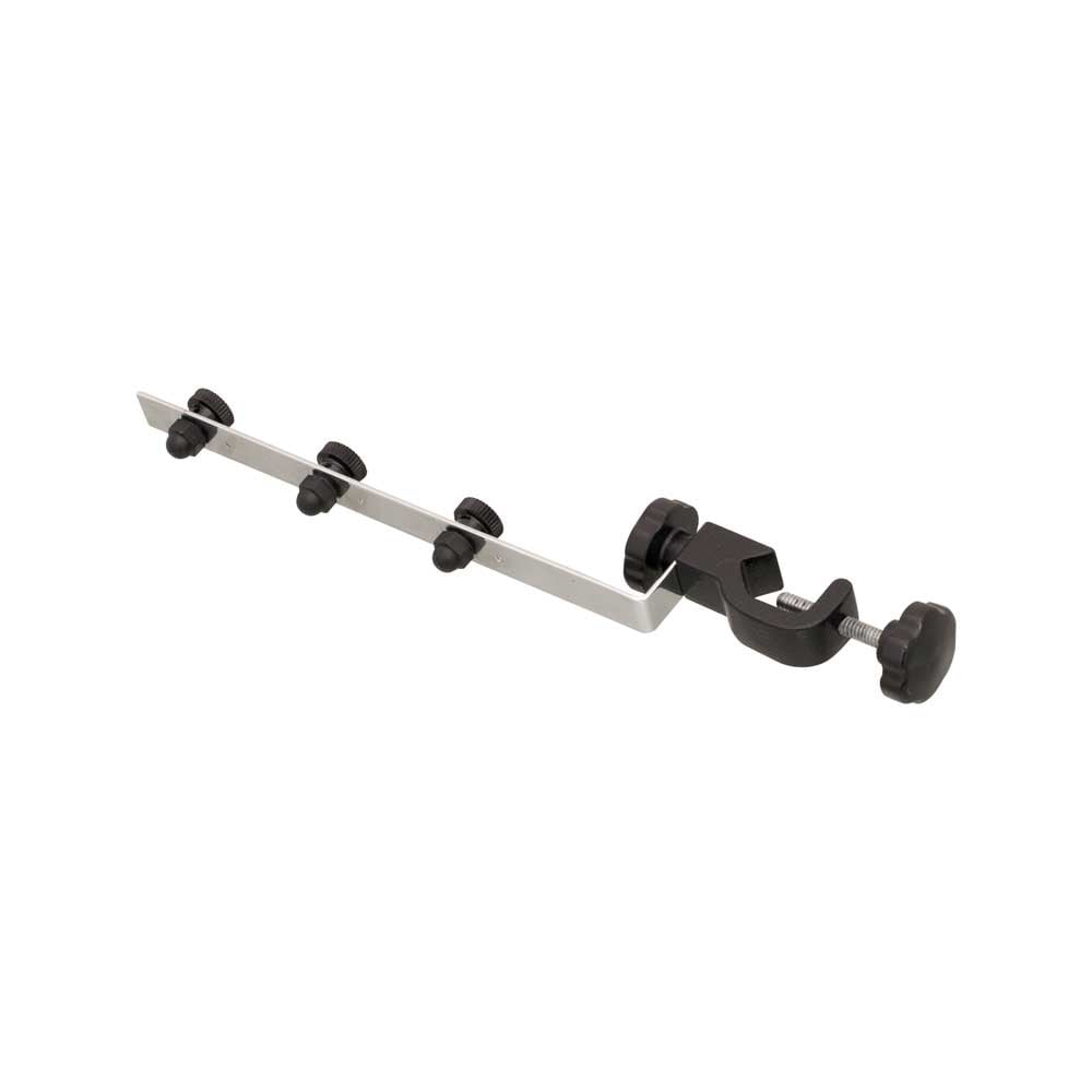 Approximately 28 cm long clamp designed to hold 3 pendulums, all pendulums can be individually adjusted without disturbing the others. With knurled thumbscrews to keep suspension cords secure.