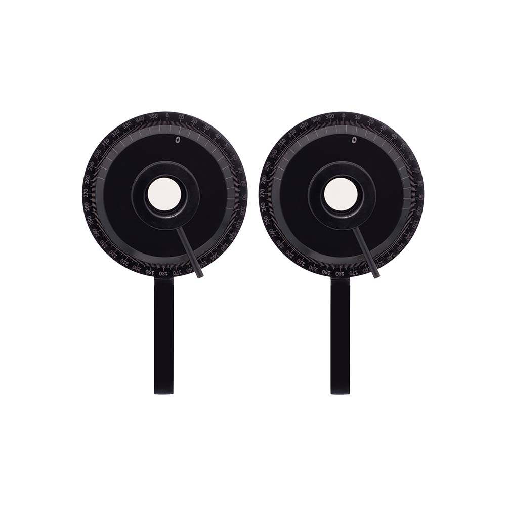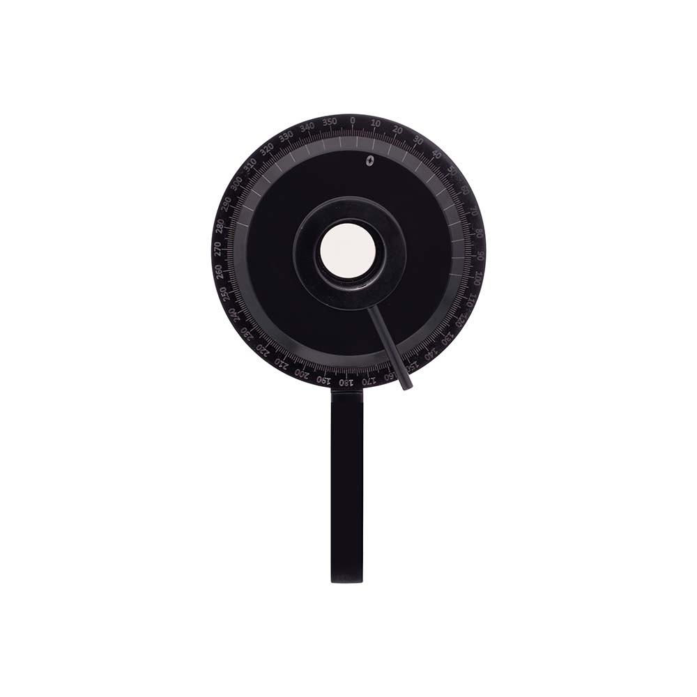 The polarizer linearly polarizes the light from the light source. The analyzer records the angle of polarization of light after it passes through a medium. When used together, one can find the total angle of rotation in light.