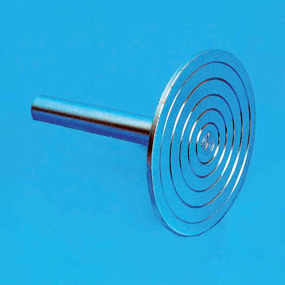 Brass disc 82 mm diameter, mounted on 6 mm rod.