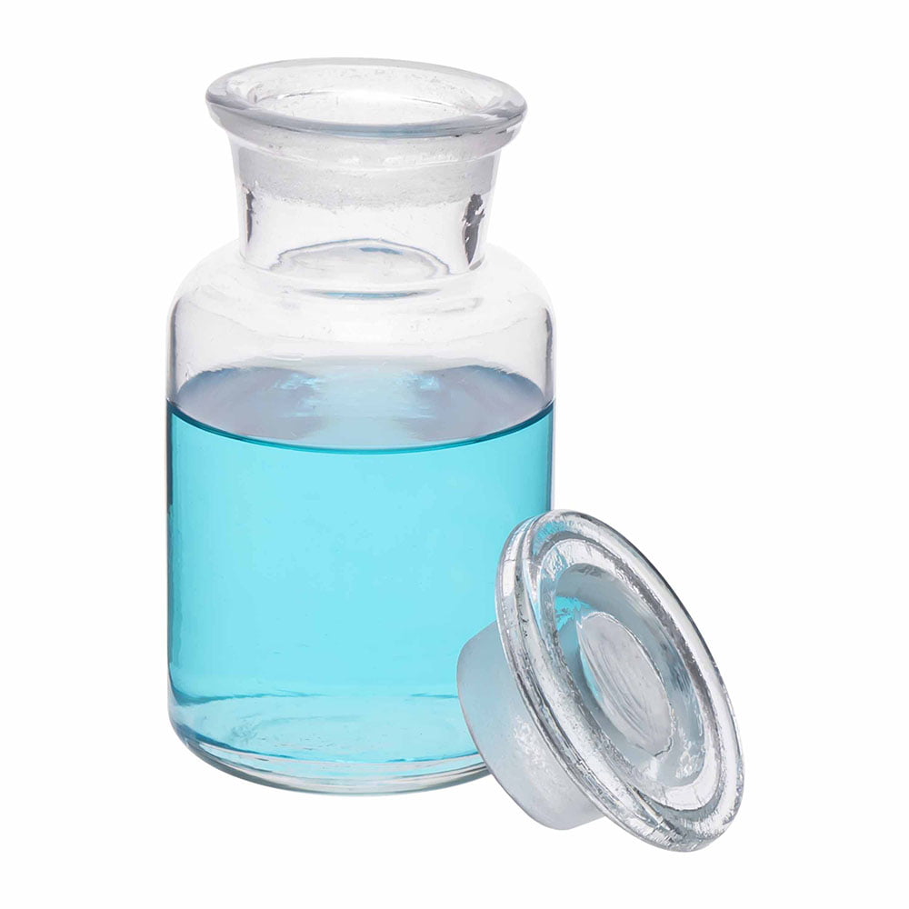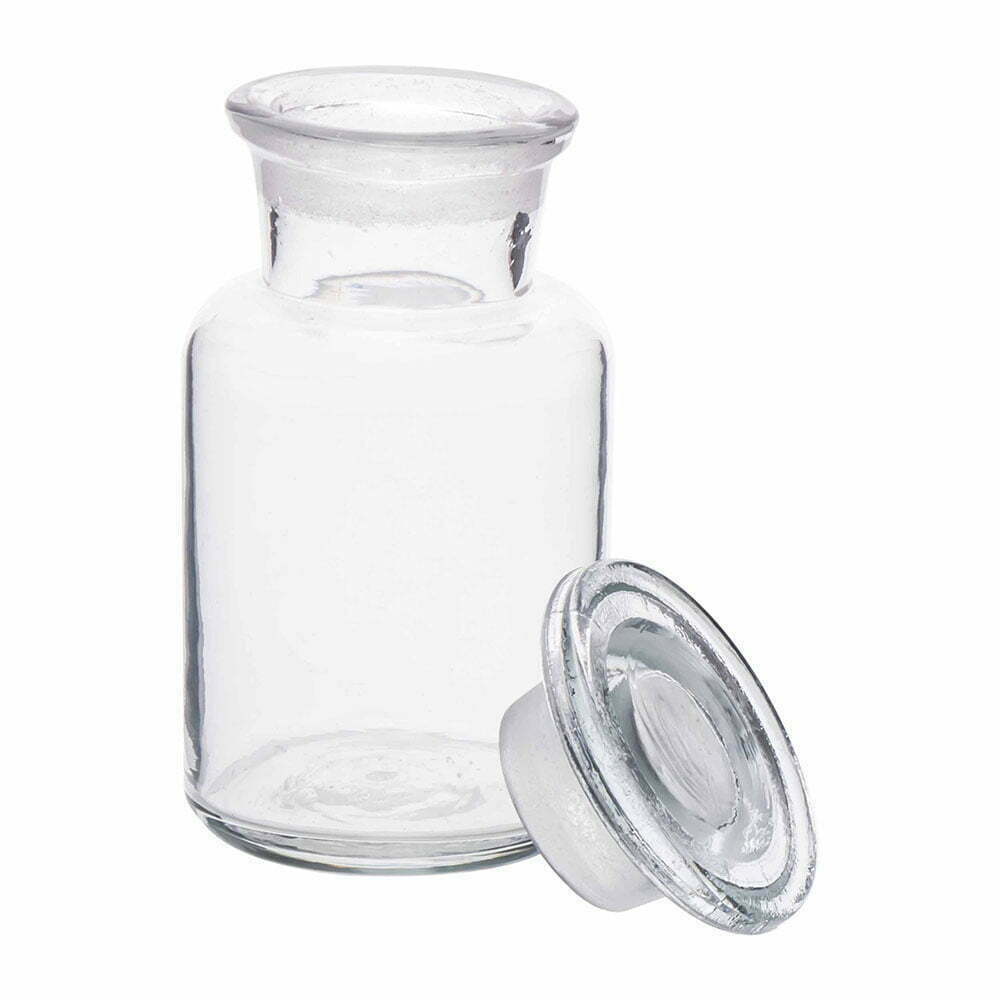 Soda Glass, Wide mouth, with dustproof flat stopper, Clear.