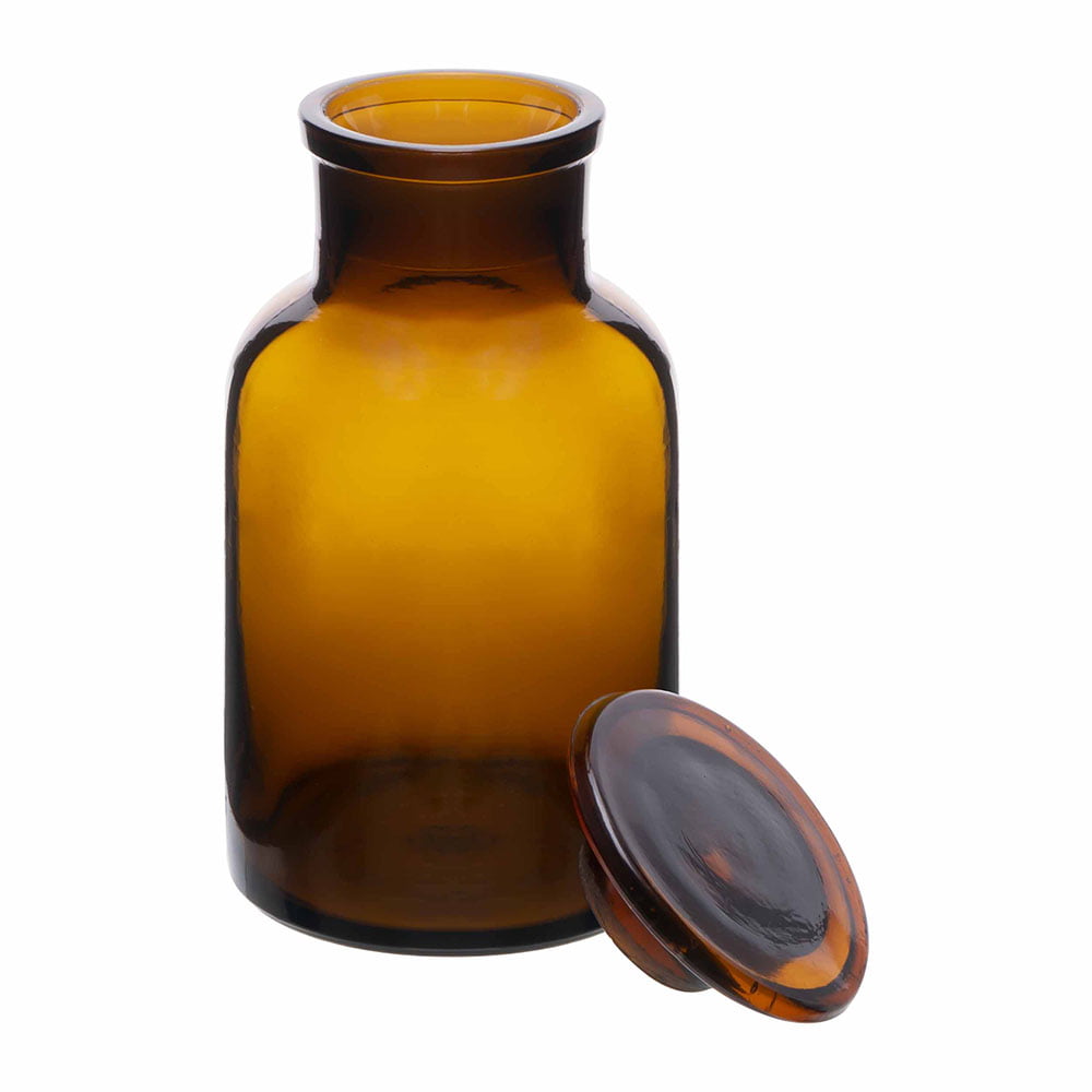 Soda Glass, Wide mouth, with dustproof flat stopper, Amber.