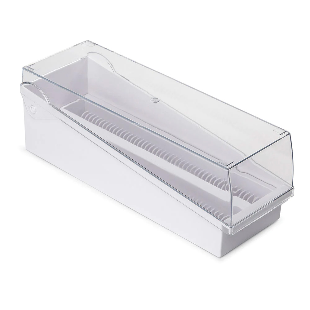 Adding to the existing range of slide accessories, this slide storage rack made of ABS can hold 100 slides, recognizable through the numeric indexing. Spacing between the slots provide adequate backward & forward movement of slides for convenient recognition. The transparent cover provide excellent view of the slides stored inside.