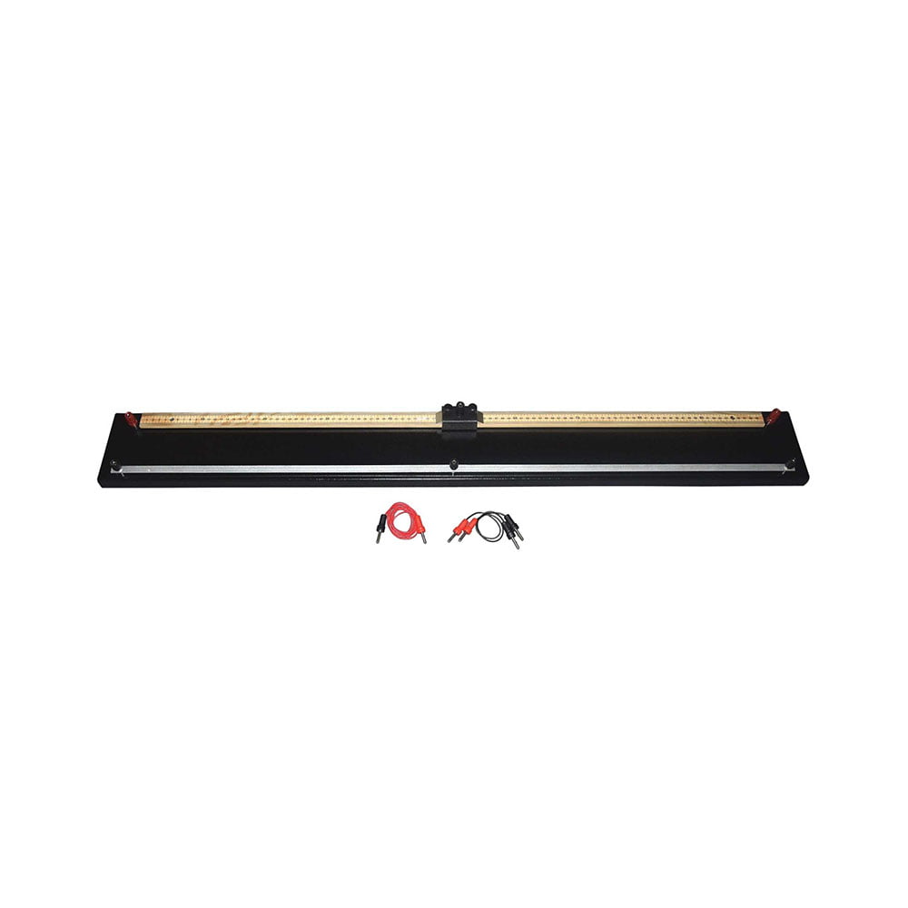 Consists of a resistance wire with a sliding contact and a strip of aluminum to provide two “arms” of the bridge for known and unknown resistance. Strips of heavy aluminum are provided with a single gap in each of two arms for the resistance. All components are mounted on a heavy sheet metal base. With Instructions.