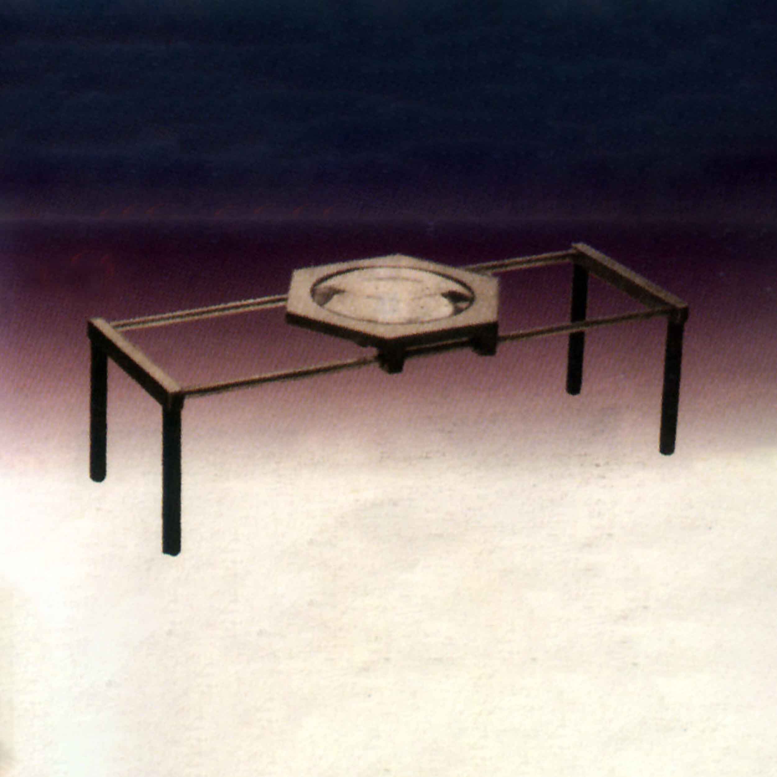 A plano – convex lens set in a frame traverses on two parallel steel bars. Telescopic legs are fitted at each corner of the frame so that the magnifier can be located over objects of varying sizes.