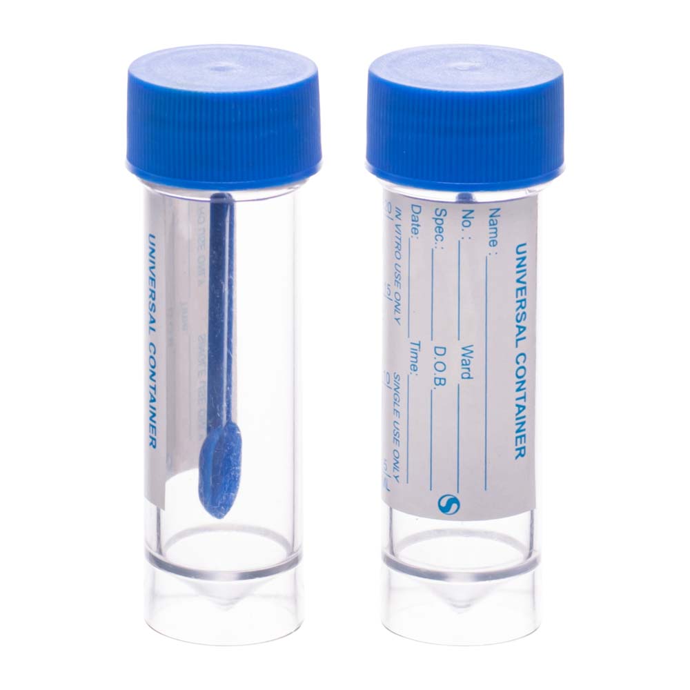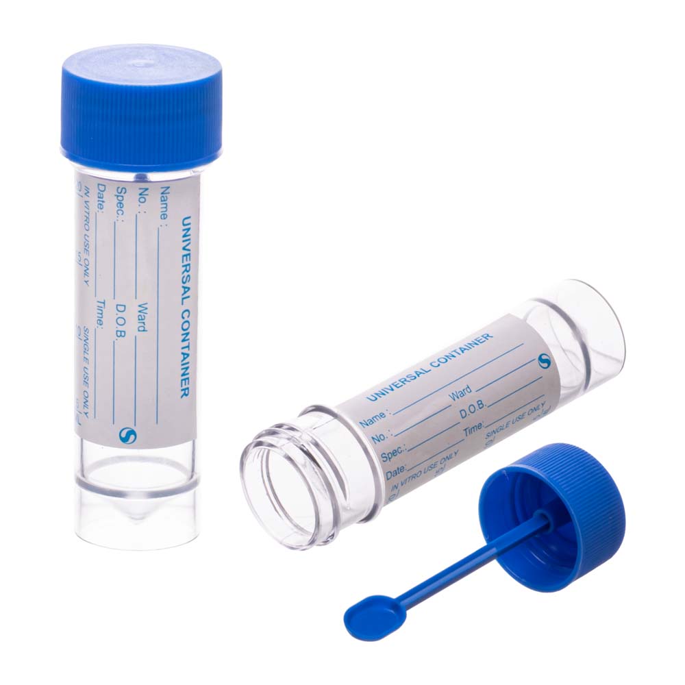 In addition to the range of existing sample containers, this Stool Container has the unique feature of one piece moulded cap-spoon combination.