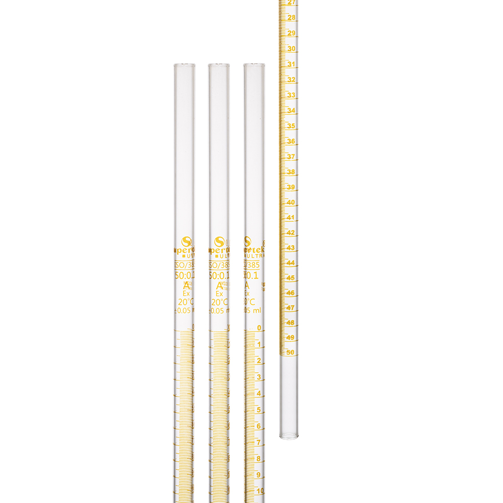 Supertek Ultra BURETTE WITH STRAIGHT BORE MOULDED SCREW THREAD GLASS STOPCOCK, CLASS A