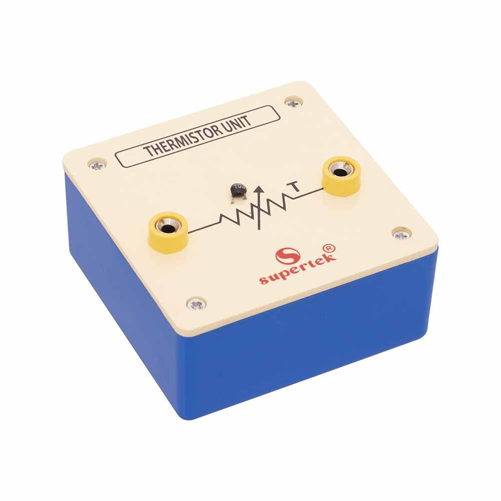 Mounted on base, with 4 mm color-coded sockets, with circuit diagram printed for demonstration. Thermistor is mounted above the base to avoid the damage from heat.
