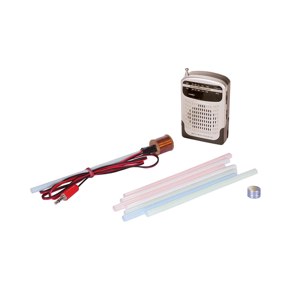 A Hands-on kit that teaches the principles of sound induction/conduction. When students bite on the wooden rod, the frequencies of the attached audio signal, from a radio, is then transmitted from their teeth to their ears. Includes activity material for five students and an instruction manual.