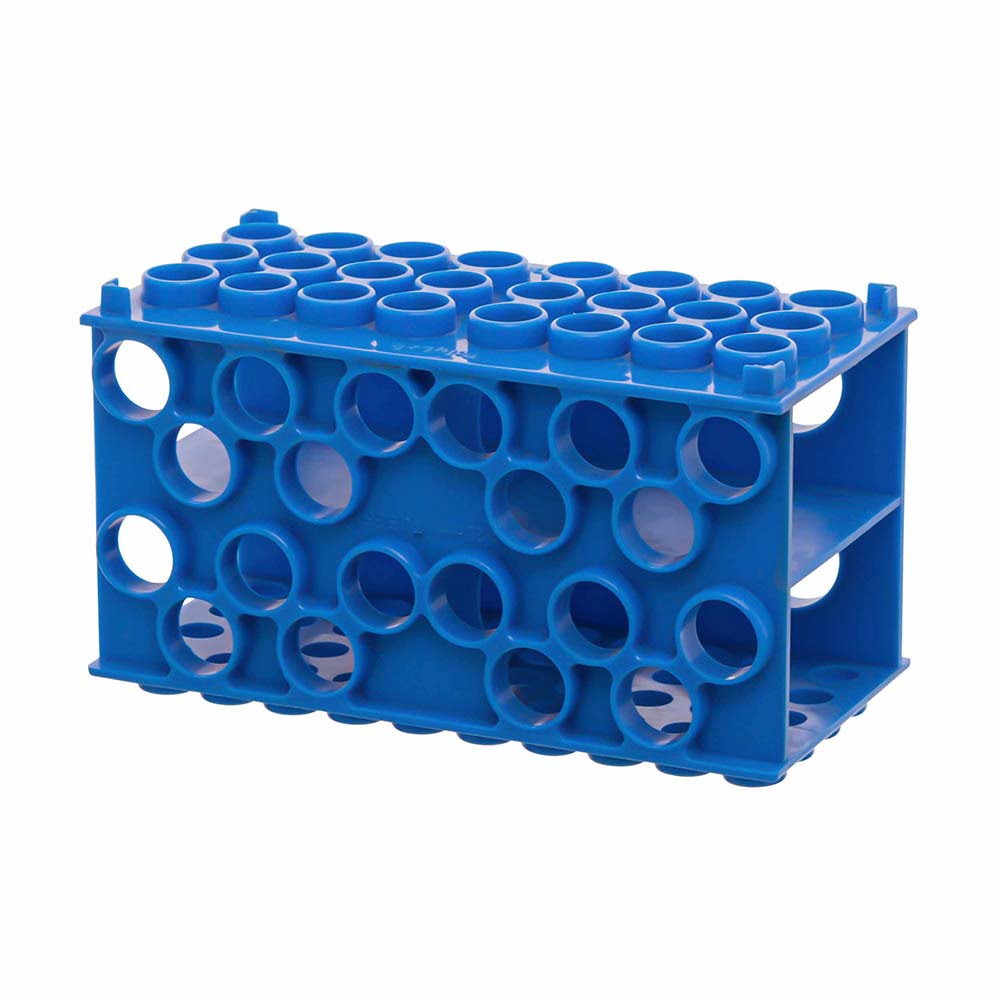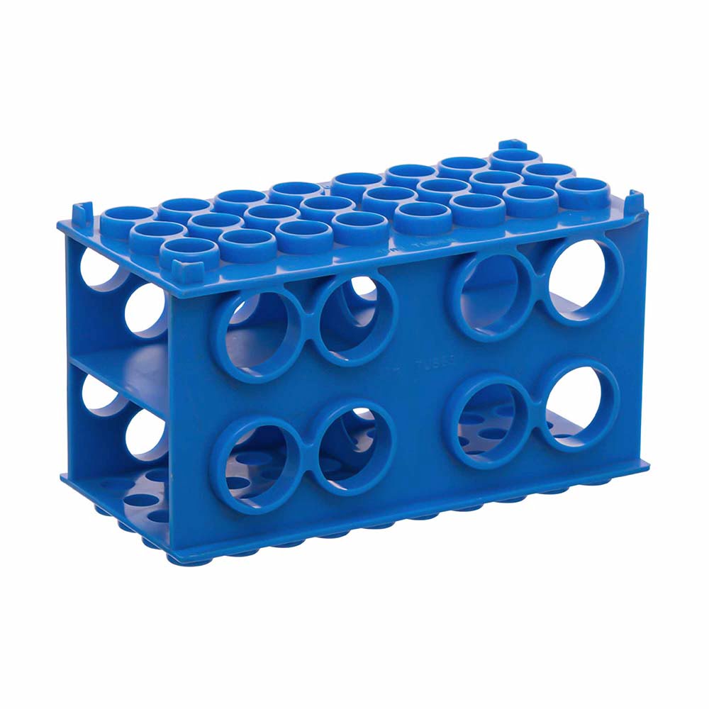 Polypropylene, compatible with different sizes of tubes.Four sides of this rack can be used for tubes of ø30mm, ø20mm, ø17mm & ø12mm.