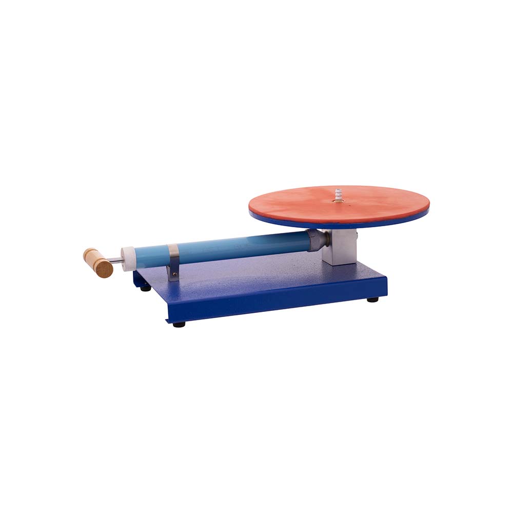 This setup consist of a metal plate and a hand vacuum pump mounted on a heavy metal base. A rubber seal is provided on top to perform a variety of bell jar experiments.