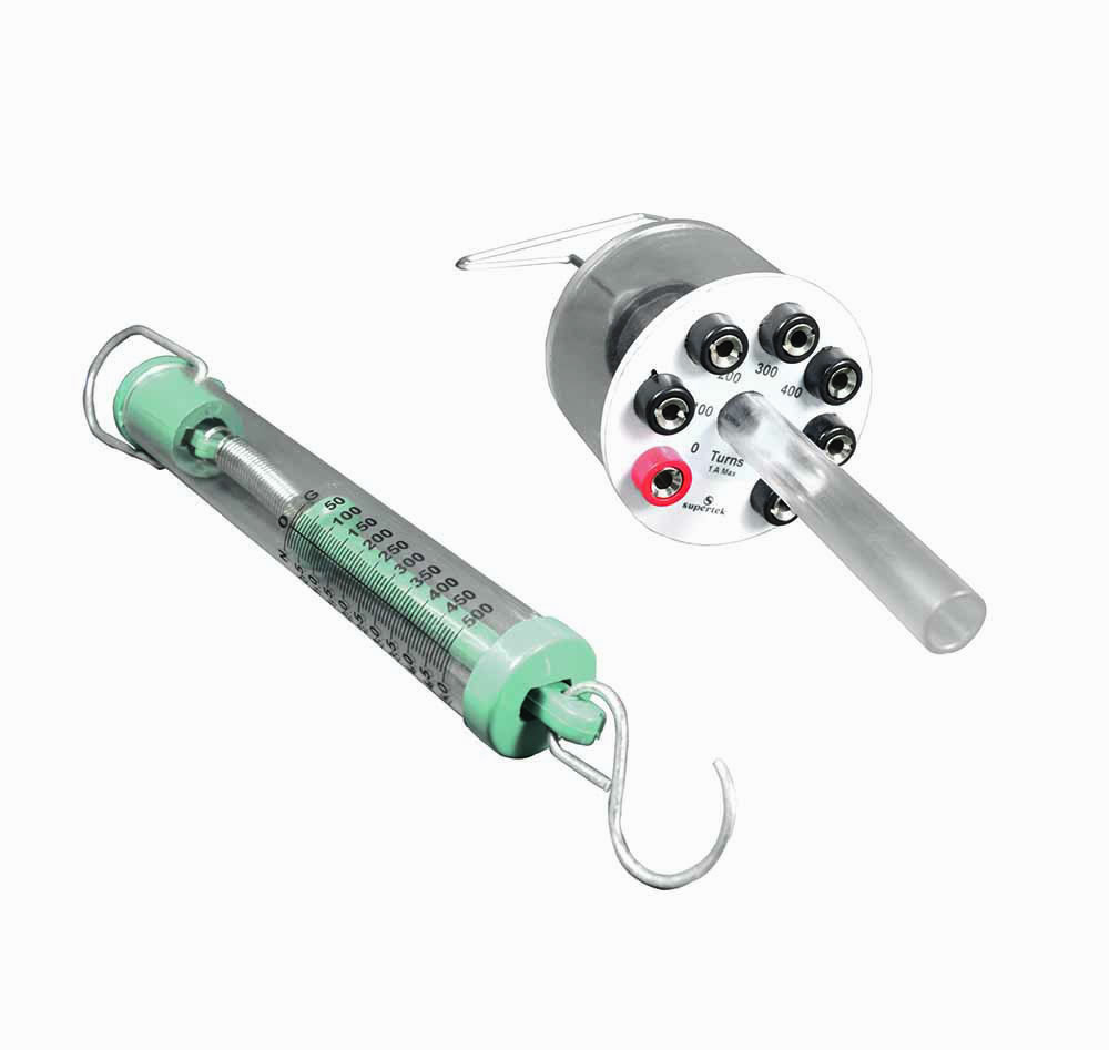 The variable coil electromagnet has 6 different coil options: 100, 200, 300, 400, 500 and 600 coils. A steel hook underneath gives students the opportunity to measure the strength of the magnetic field generated by varying different numbers of coils. A variable D.C. low voltage supply is required.