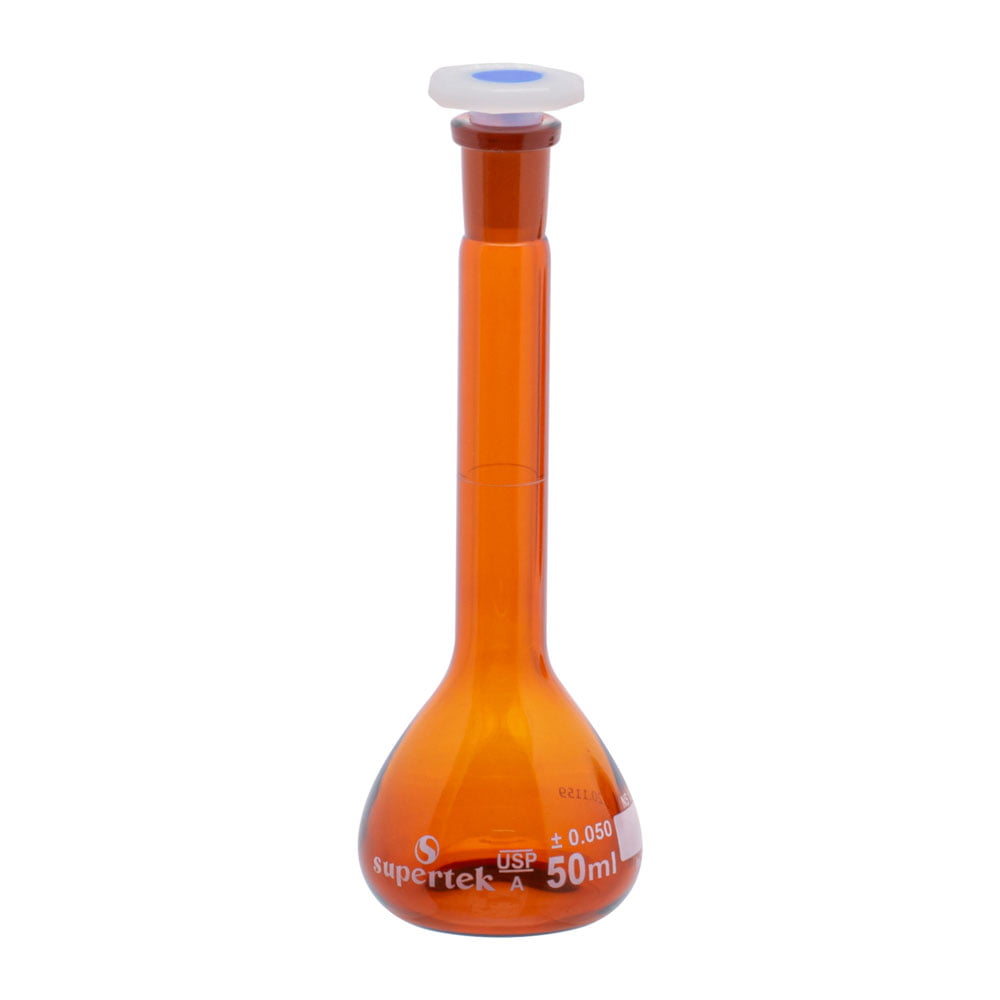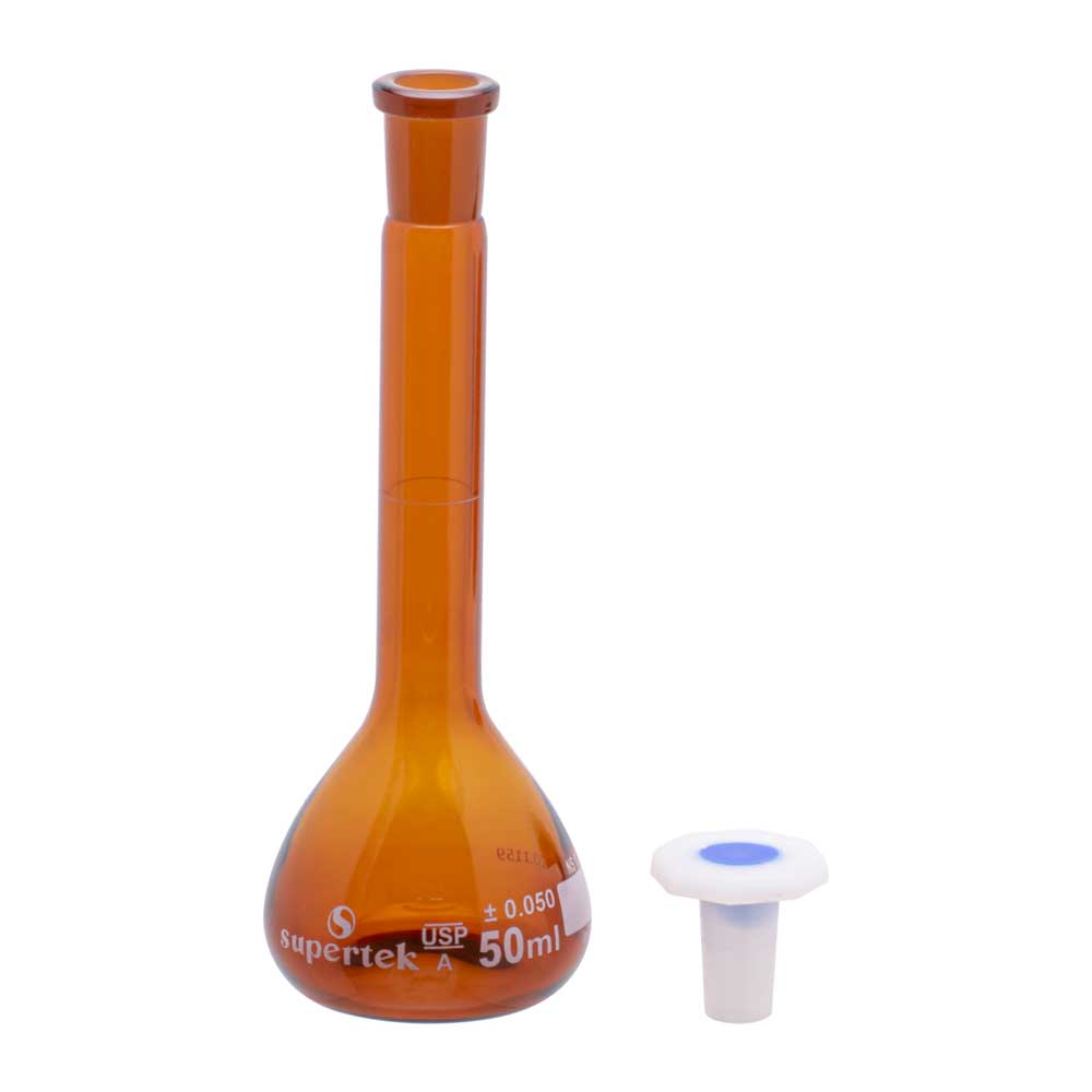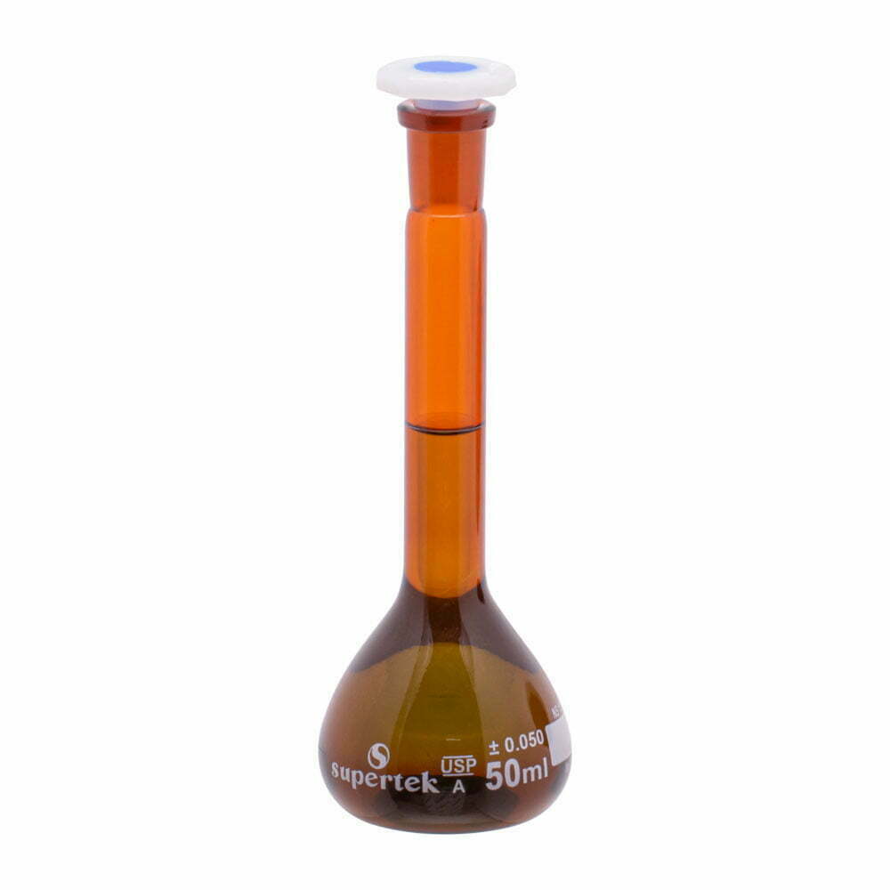 Volumetric Flask Amber Glass with Polypropylene Stopper, Class A