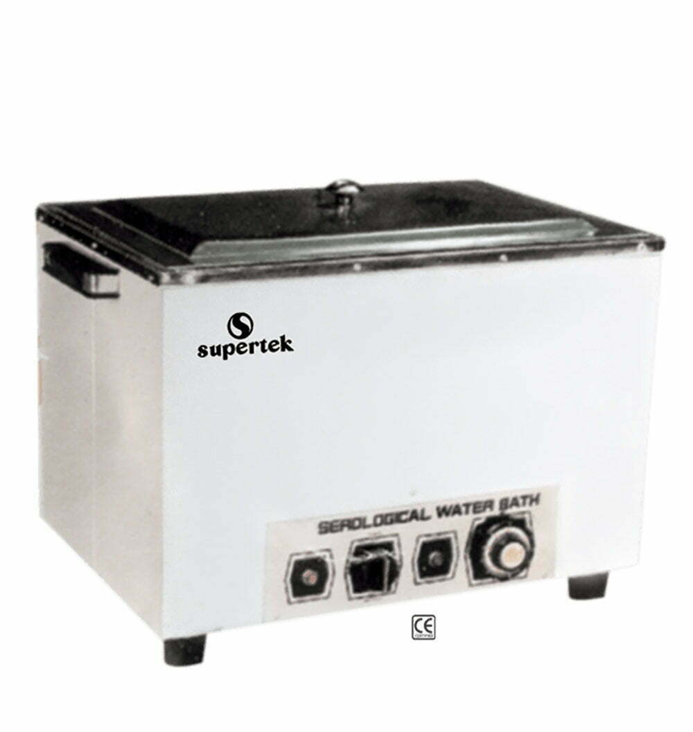 Double walled, inner chamber of stainless steel, outer made of stove enamelled mild steel, with insulation in between, Thermostatic temperature control from 5°C above room temperature to 95°C with accuracy ±0.5°C. Bath has a stainless steel cover, perforated and removable shelves, drain plug, two indicator lights, thermostat control knob , heater with automatic cut-out. Supplied without racks. Works on 220V AC / 50 Hz.