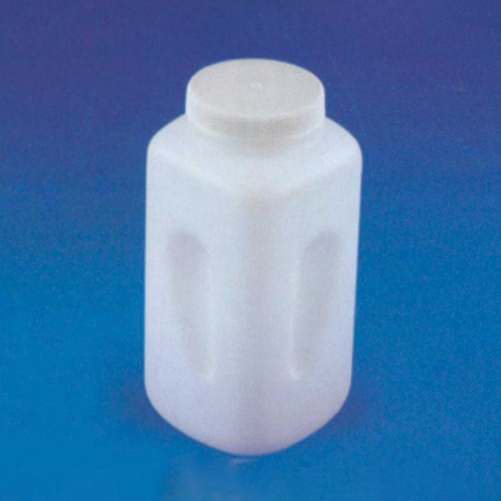 This autoclavable bottle, made of polypropylene, can be used for storing & shipping chemicals & reagents. Being wide-mouthed, it is always convenient to pour in & take out the reagents. The built-in depressions on two sides provide excellent grip while holding this bottle.